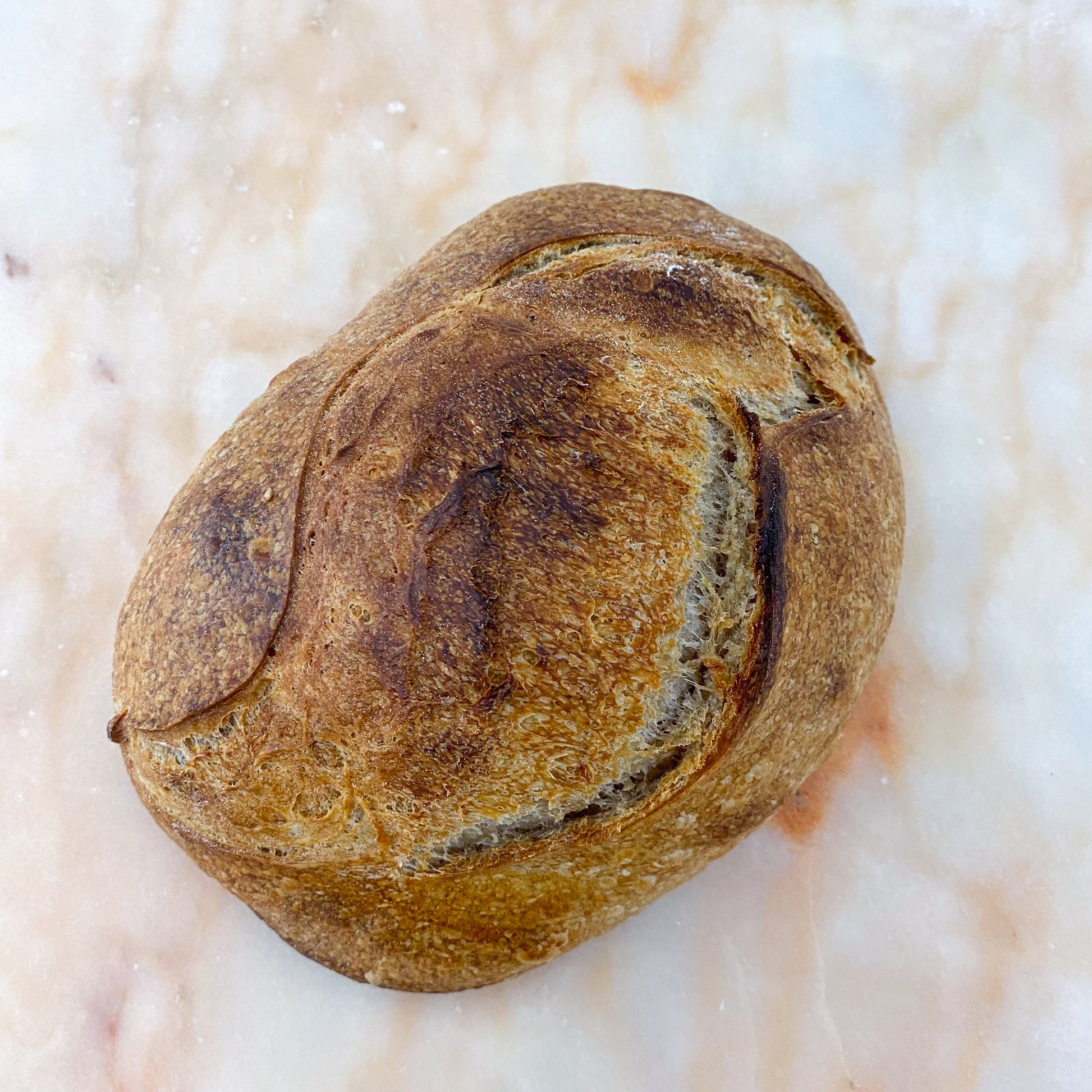 Pão à base de farinha de espelta, uma variedade de trigo ancestral que sofreu poucas modificações humanas.